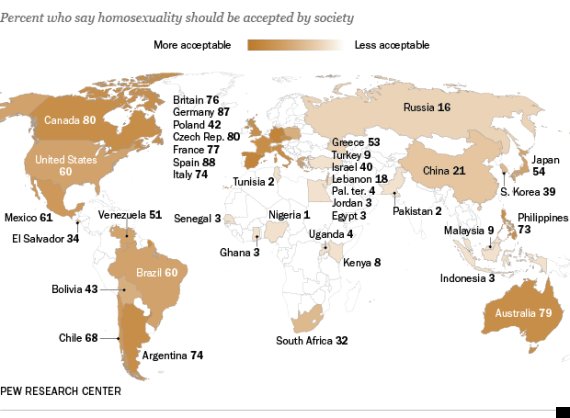 സ്വവര്ഗരതി സമൂഹം സ്വീകരിക്കണം എന്ന് പറയുന്ന രാജ്യക്കാരില് പാക്കിസ്ഥാന്കാര് ആകെ രണ്ടു ശതമാനം മാത്രമാണ് കാണപ്പെടുക. താഴെയുള്ള ചിത്രം നോക്കൂ. ശതമാന ക്കണക്കില് ആണ് എല്ലാം.
